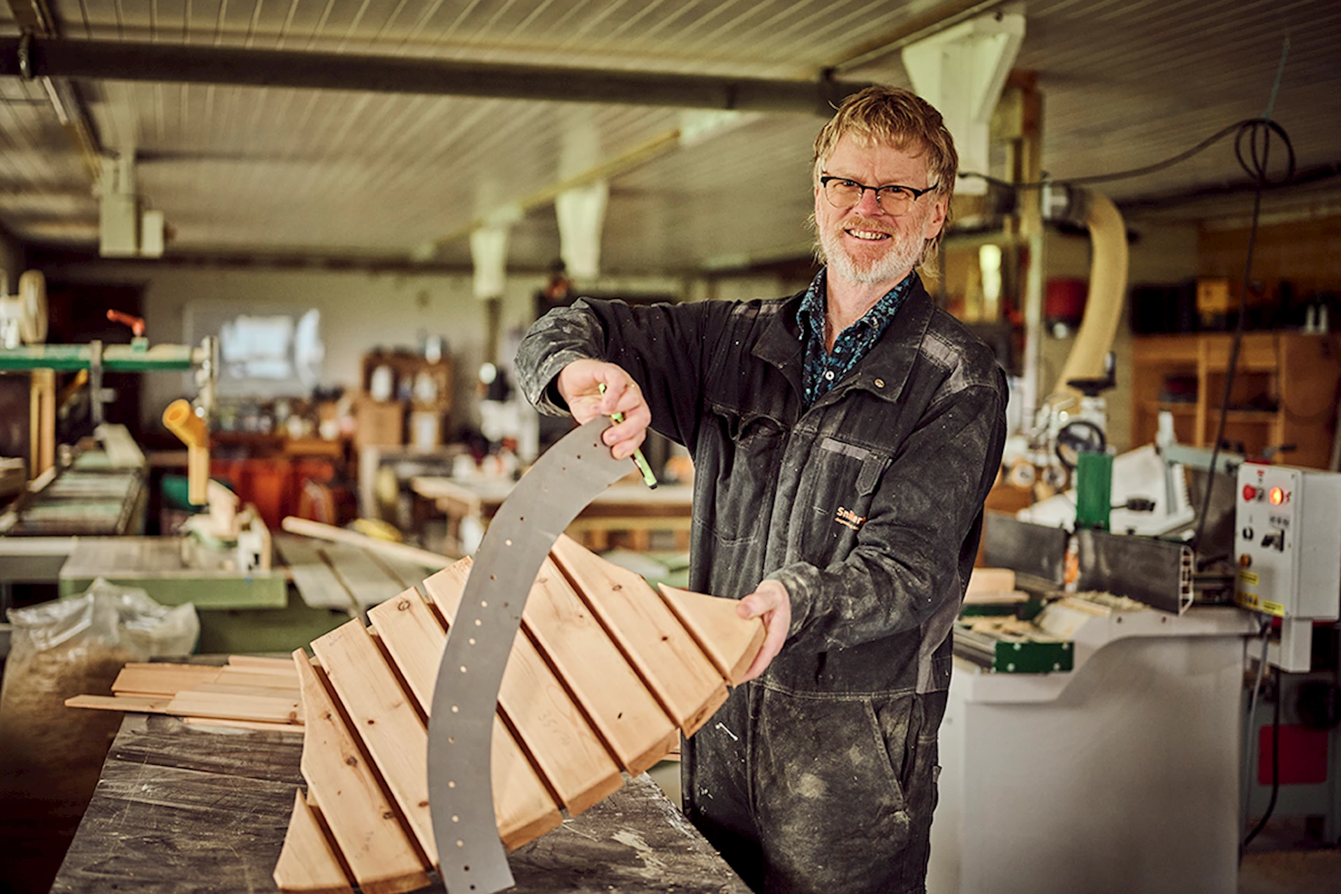 - Med vannbåren varme har jeg mulighet til å bruke flere typer energikilder: strøm, varmepumpe, flisfyring, ved eller gass. Det er dessuten snakk om å grave fjernvarme rett forbi tunet her, og om det blir gjort, da kan jeg koble på den. Det er mange muligheter. Kontoret i verkstedet varmer jeg opp med radiatorer. Jeg har også planer om å sette opp noen viftekonvektorer i verkstedet.