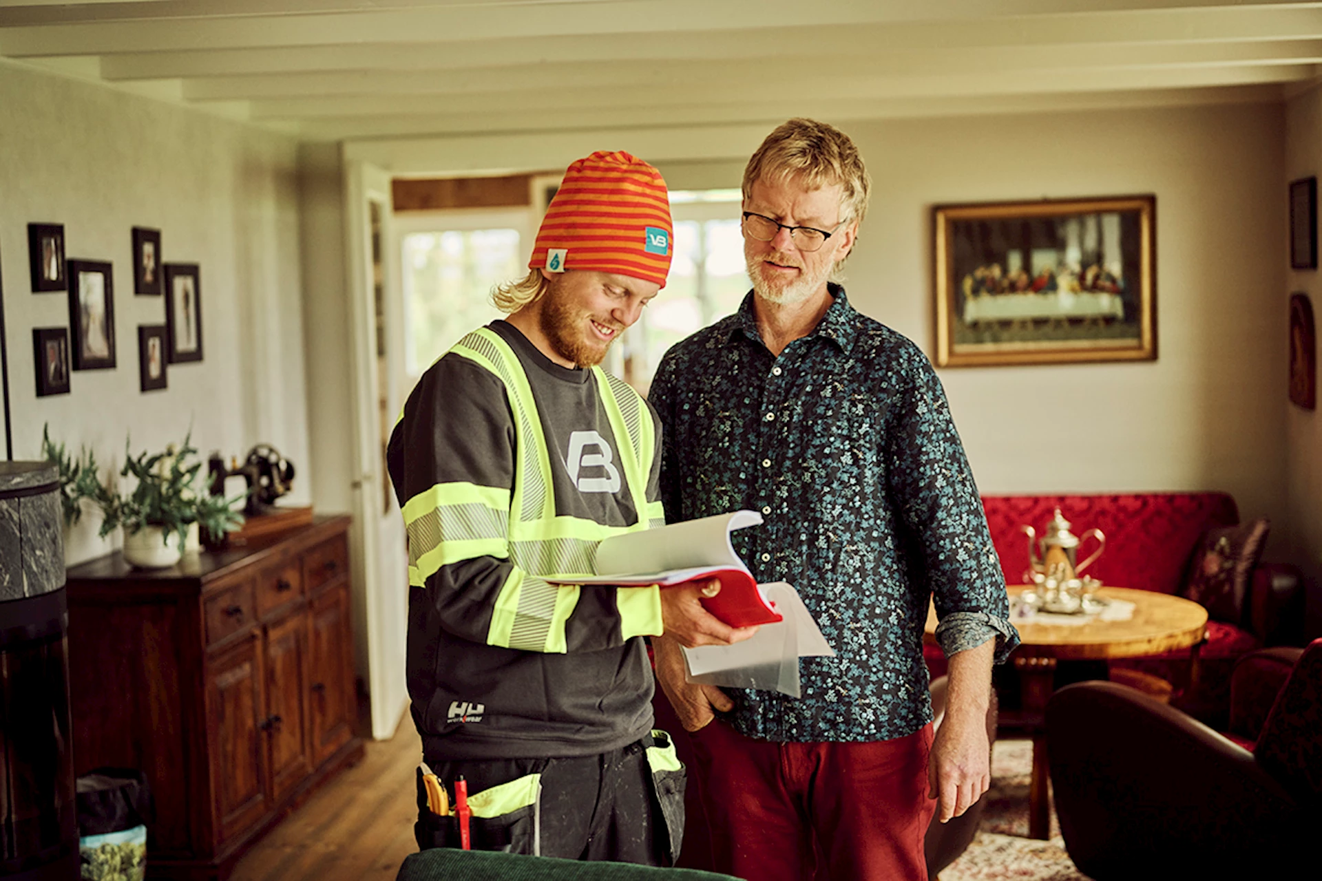 - For gamle hus, som her, så er det ikke bare å legge ned rør, du må planlegge hvilke løsninger du skal gå for. Dessuten kan du få støtte hos Enova, og der er det også viktig for oss å komme inn tidlig i prosessen. VB kan hjelpe kunden med søknaden, sier han.